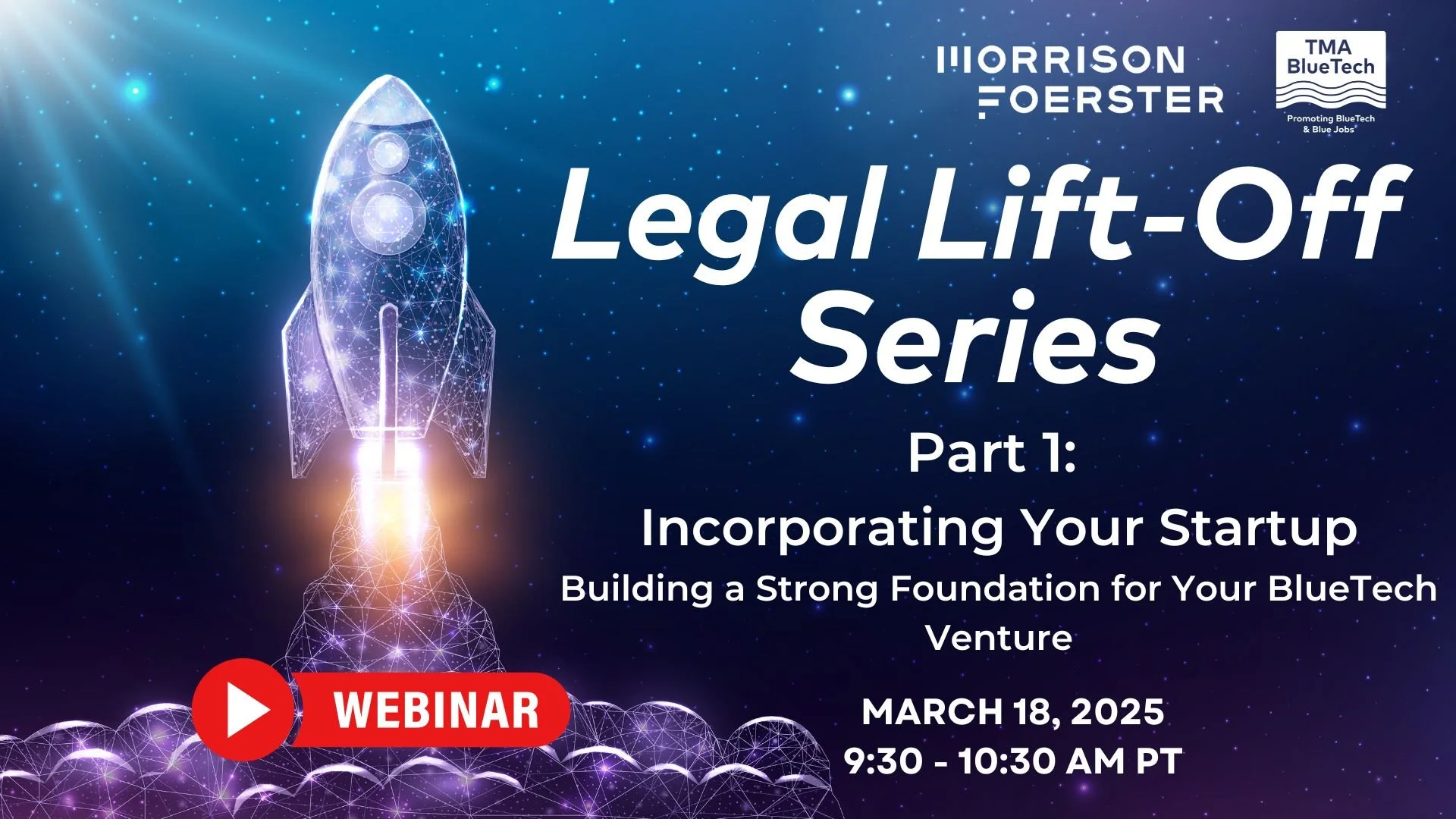TMA BlueTech, in partnership with Morrison Foerster, is proud to introduce the Legal Lift-Off Series: Essentials for BlueTech Startups, a monthly program designed to help BlueTech ventures navigate the complex path from startup to scale. These expert-led sessions will provide critical legal, financial, and strategic guidance tailored to entrepreneurs in the maritime, ocean technology, and sustainable blue economy sectors.
