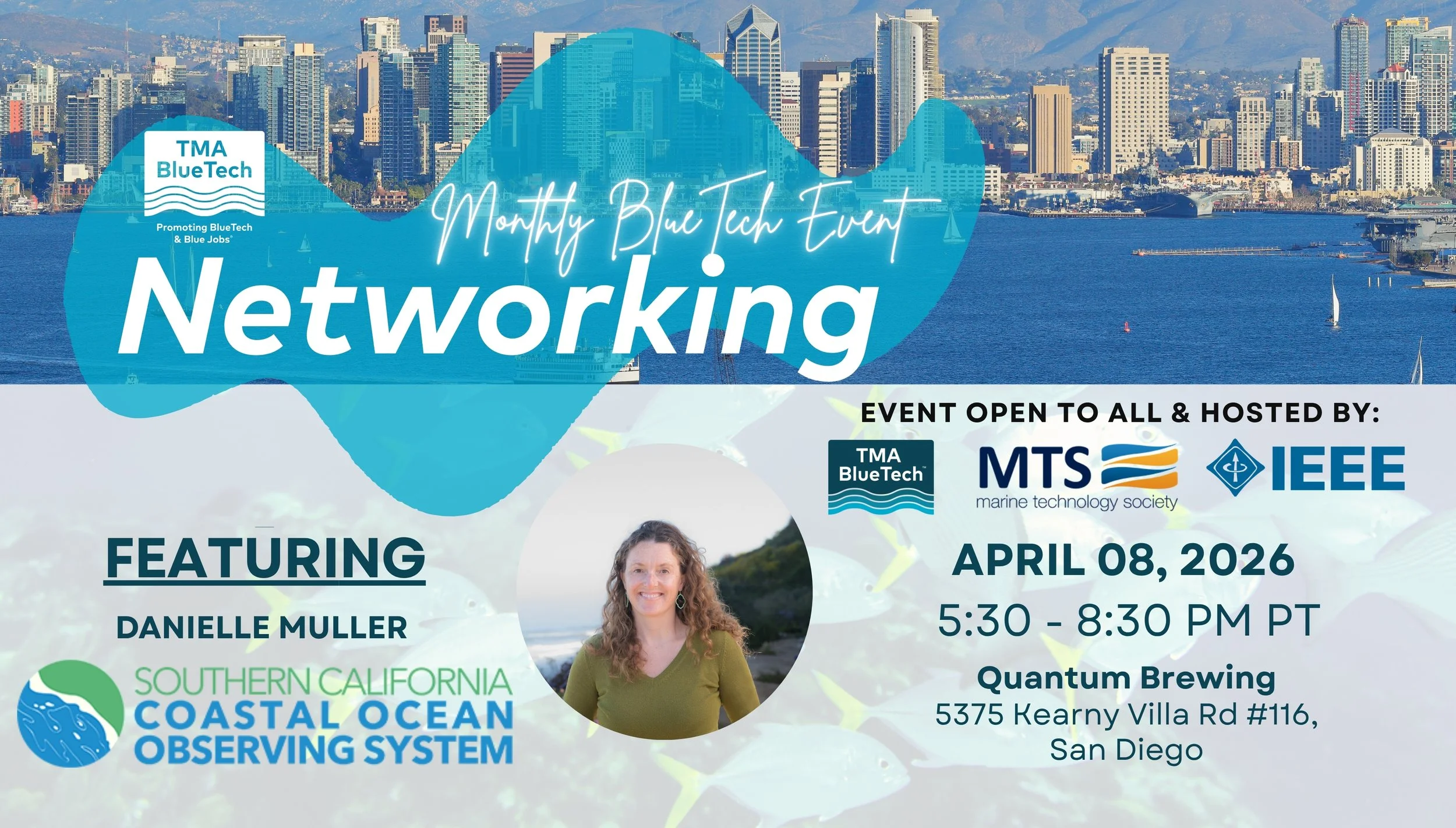 TMA BlueTech is pleased to welcome Danielle Muller as our main presenter this month. Danielle will share insights into Southern California Coastal Ocean Observing System - SCCOOS, and its role in advancing public-private partnerships across the coastal and maritime ecosystem.